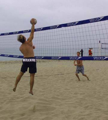 Welcome to the Capistrano Beach Volleyball Club page. We are a group who play on Saturdays and Sundays in the mornings. We play/Train with Coach Kevin Bazyouros. The weather is good and we are playing. Kevin Bazyouros (Karch Kiraly's 2001/2002 coach) is there to train beginners as well as the more advanced players. We can always fit in a few more on the courts so come on down and check it out!!! There is always something going on (Tournements, Events, Parties etc) Come on down and say hello |