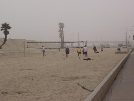 The fog lifted within one hour... there were five courts with round robin play. The top three from each pool advanved.